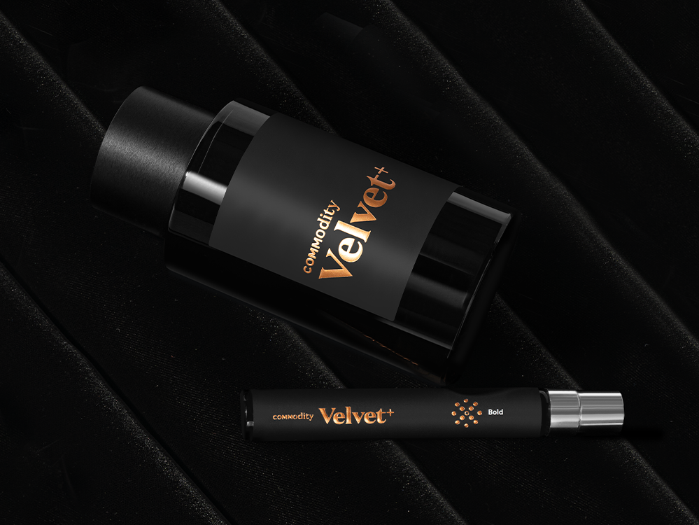 "Pour Commodity Velvet, j'ai été inspirée par l'image de pétales de roses turques vibrantes flottant doucement sur un fond mystérieux et sombre de vanille richement chaude et d'ambre noir, avec une délicieuse touche d'amande grillée flottant dans l'air. Pour Velvet Bold, la rose turque est rehaussée d'épices exotiques de safran et de vanille sucrée. Pour finir, j'ai fusionné le Labdanum avec la chaleur et la richesse de l'Ambre, créant ainsi un parfum intense, sophistiqué et séduisant" - Jérôme Epinette